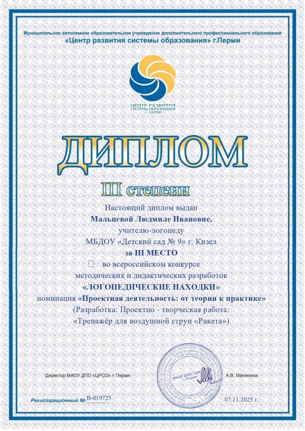 31.03.2025 г. Краевое мероприятие «Открытый день мастер-класса педагогов, реализующие адаптированные основные общеобразовательные программы/адаптированные общеобразовательные программы в образовательных организациях Пермского края » Путь к успеху» (Диплом 3 место — Мальцева Л.И.)